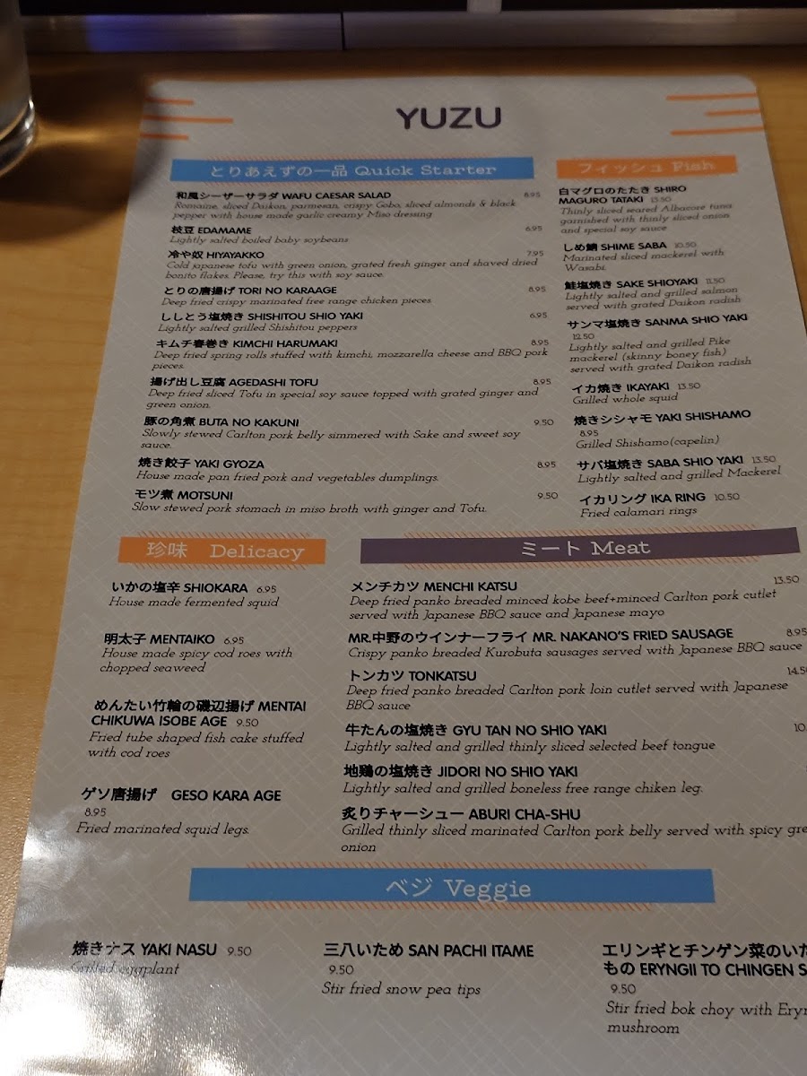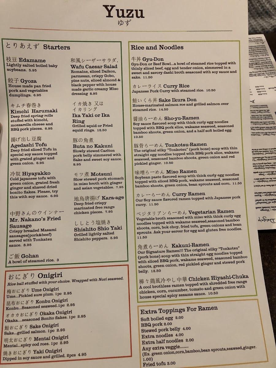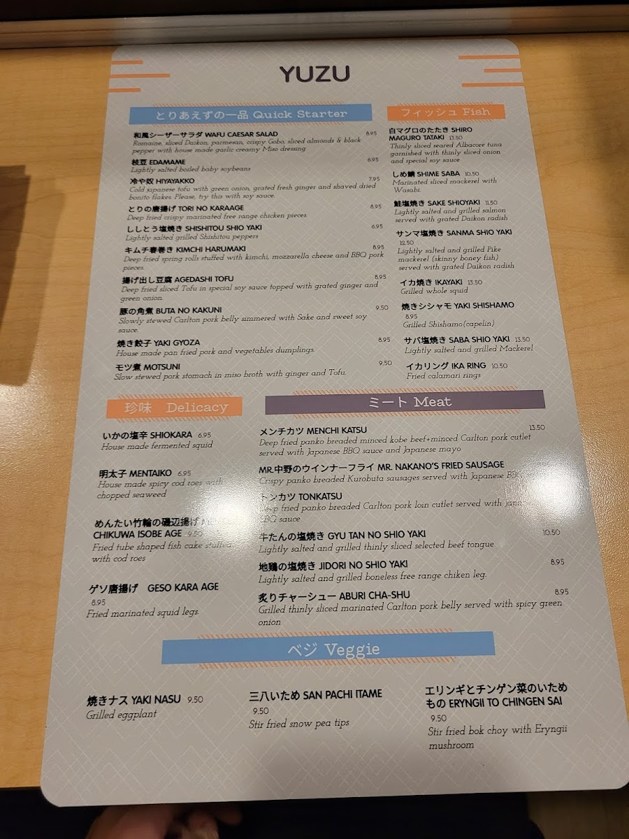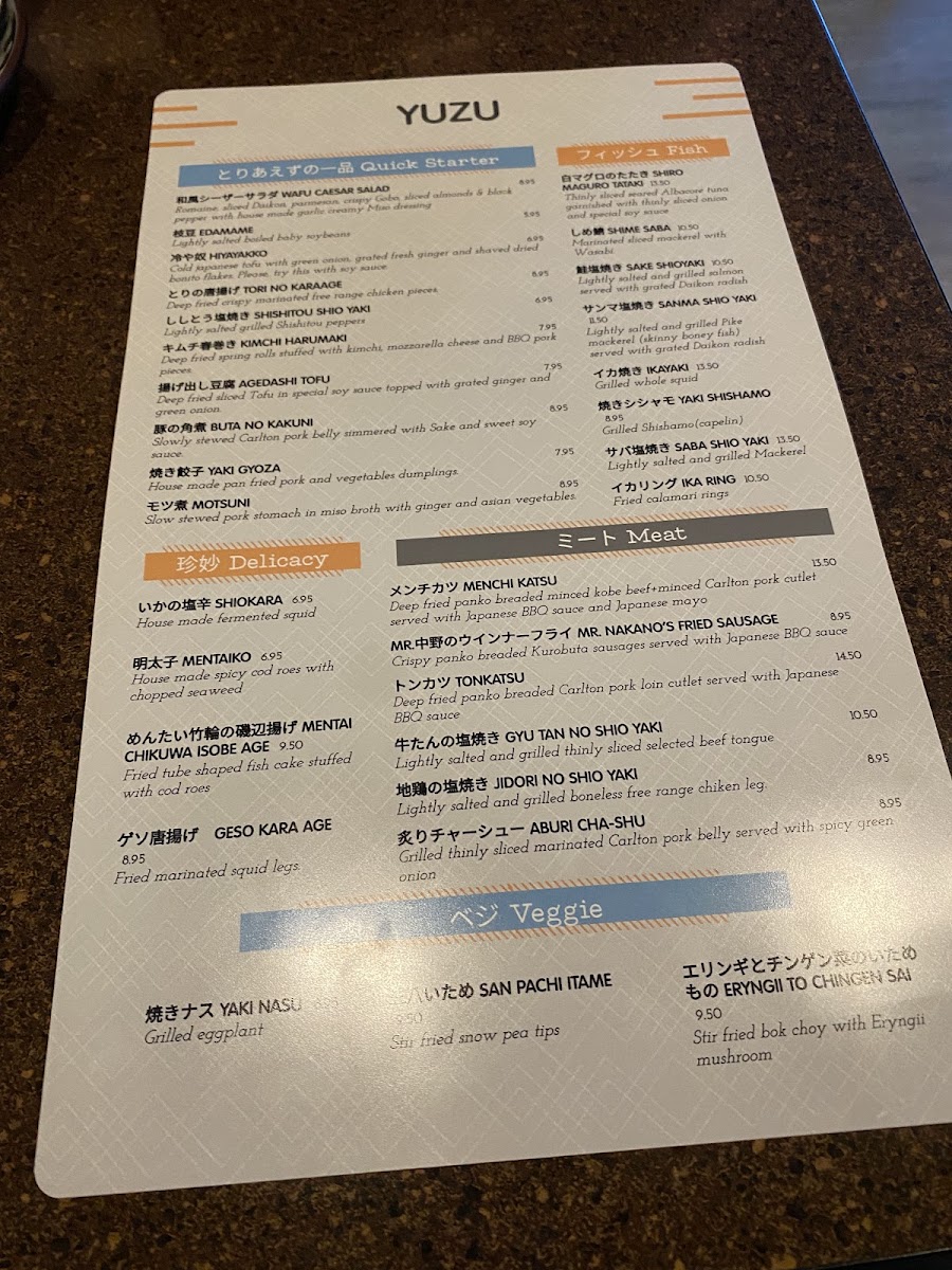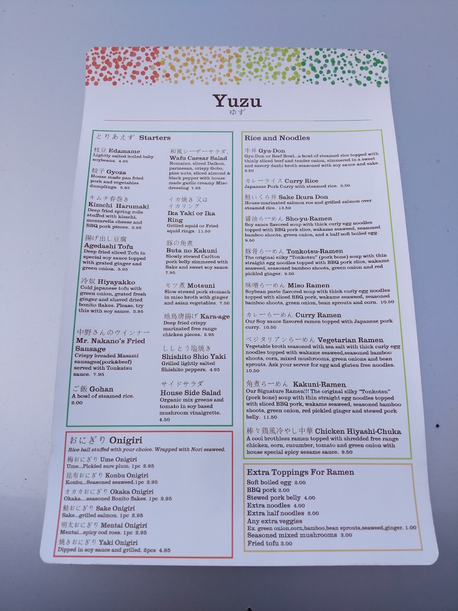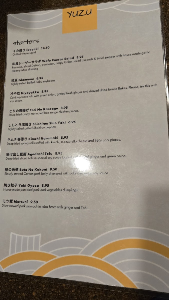 Yuzu - OR 97005 Menu
