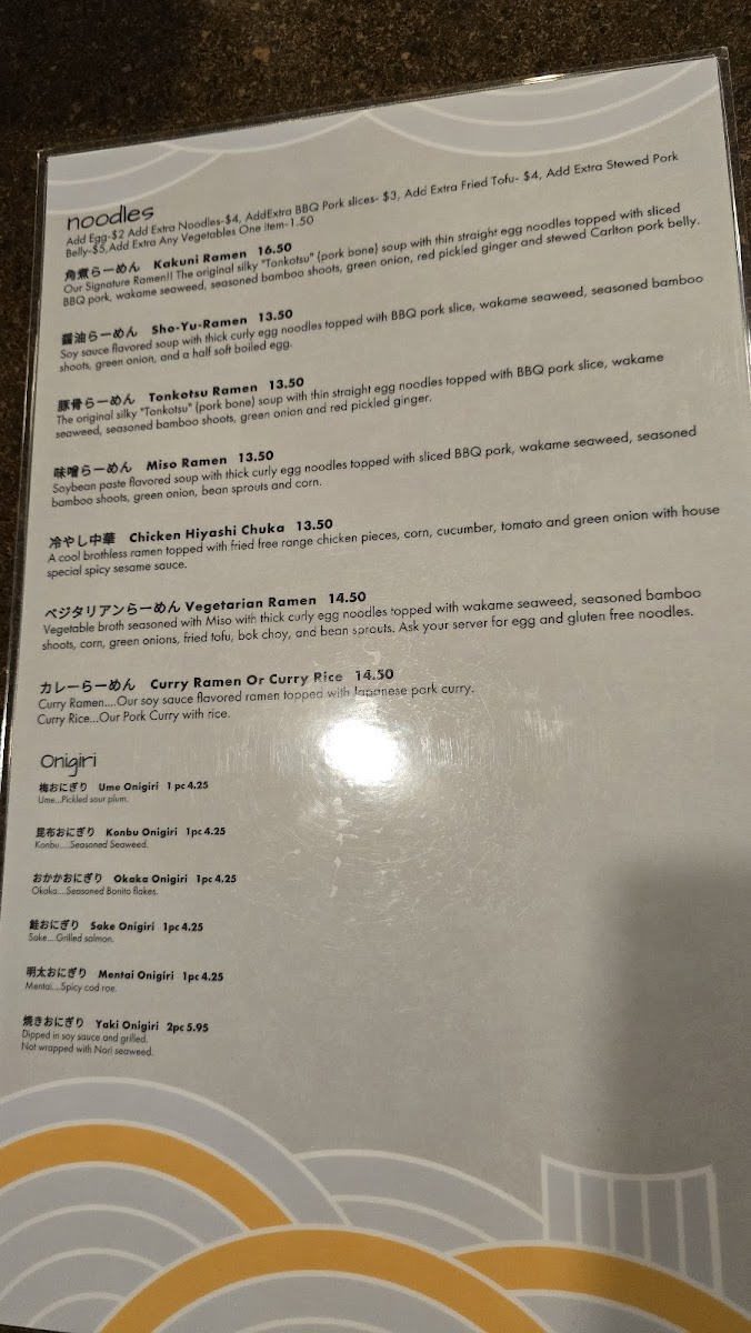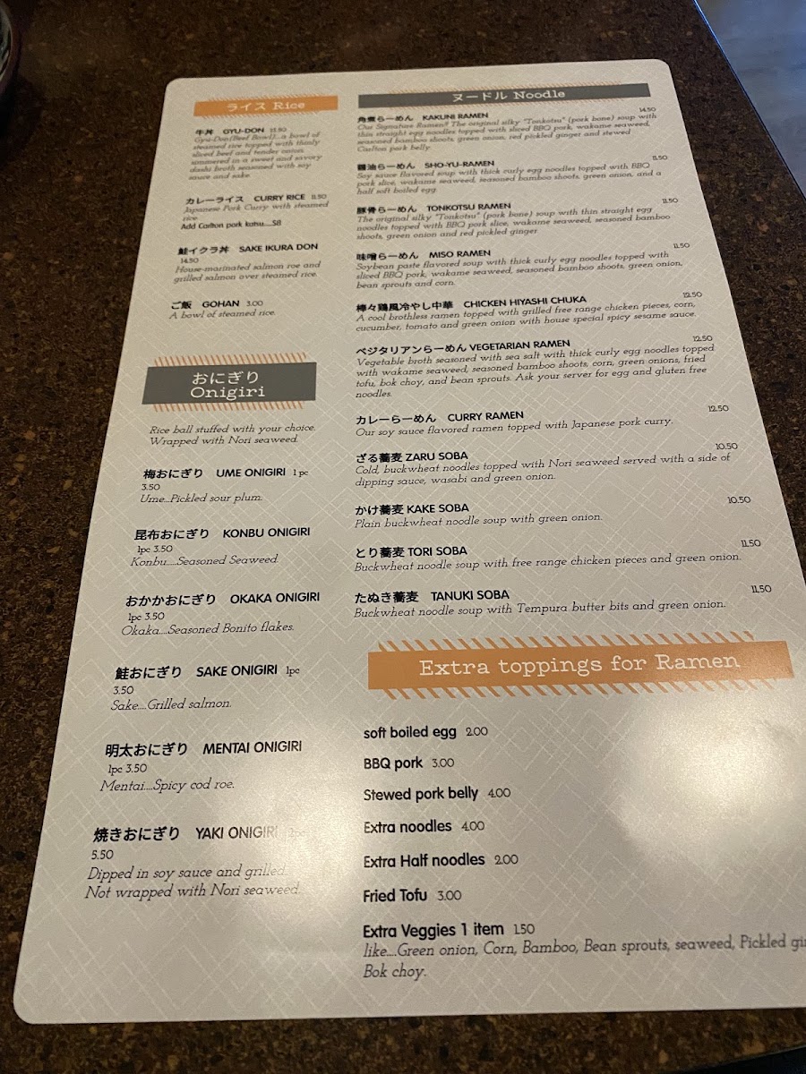 This menu is suited for casual dining occasions, allowing guests to select from a range of ramen, small plates, and rice dishes for a meal that can be light or more substantial depending on choices. It supports both solo diners and groups seeking authentic Japanese cuisine in a concise format.